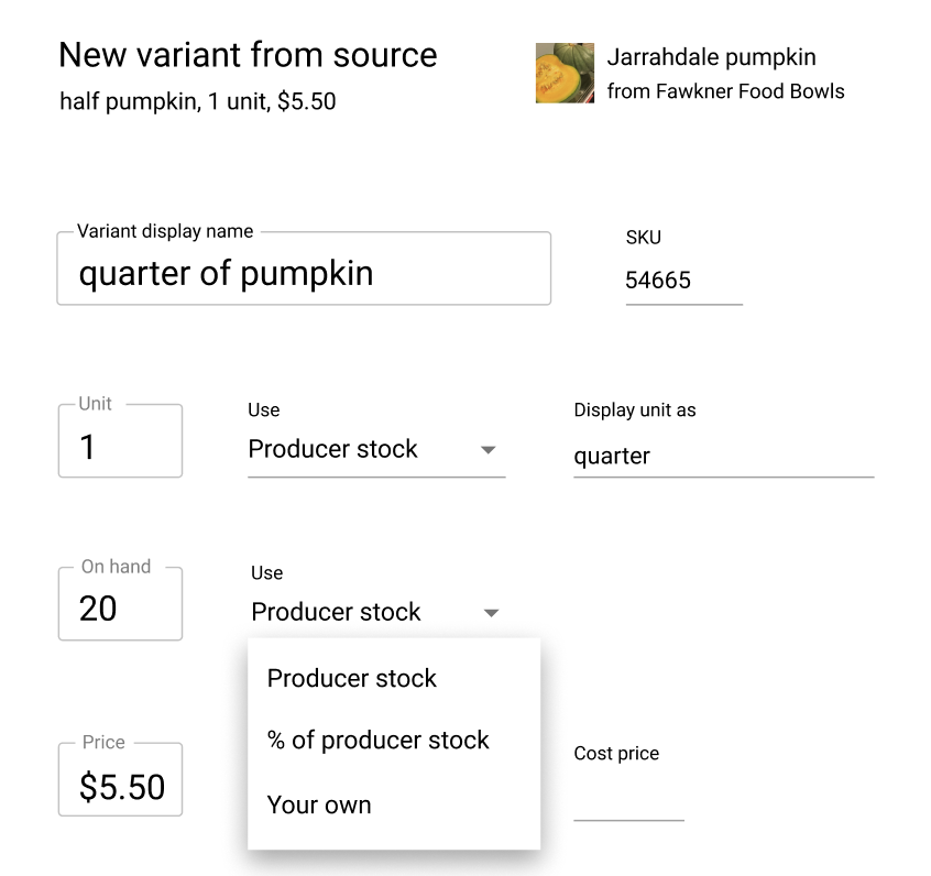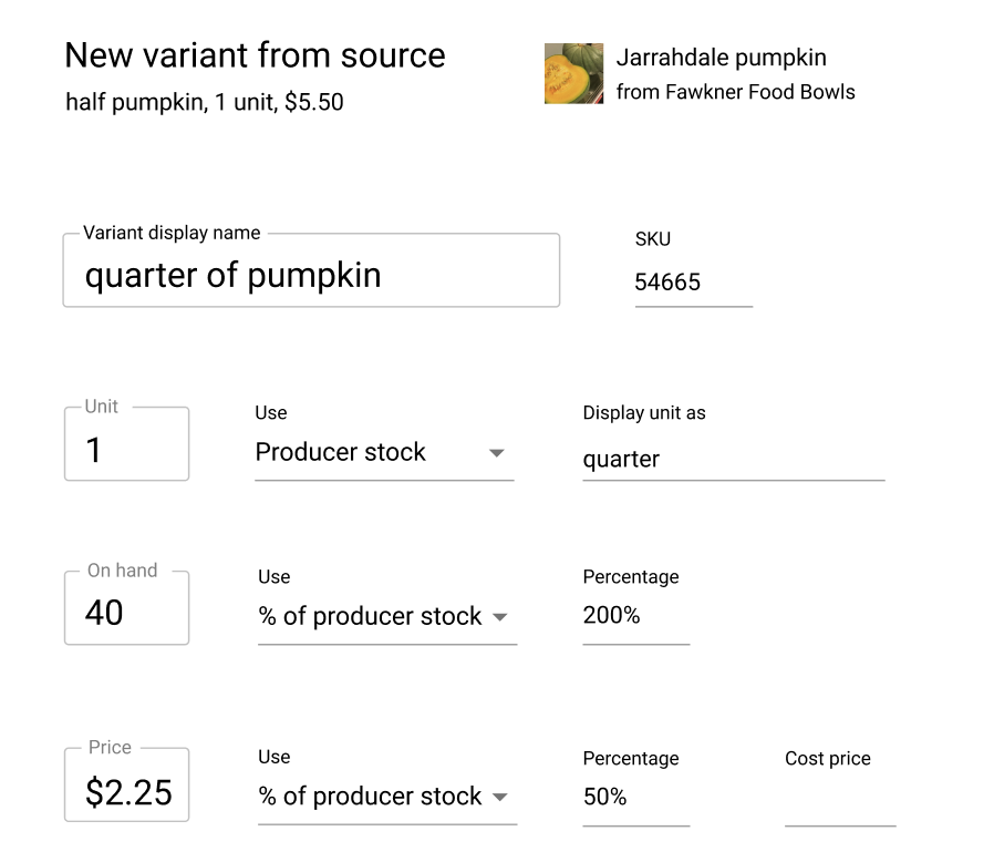 Just posting here the now pretty old concepts for the Use producer stock settings, just as a visual reminder. This was covering a hypotetical case in which a hub gets pumpkins from a producer but then sells them in quarters. But as we said, it requires a bit more thinking.