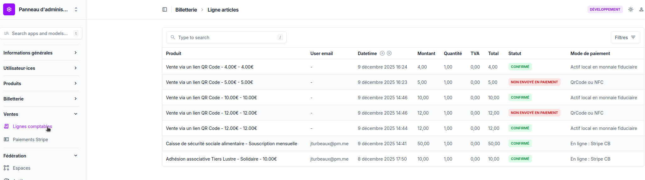 Attention, si la personne a tenté une première fois un paiement sans réussite, puis a retenté, il y a aura bien deux lignes. Tu peux filtrer par produit et statuts, et tu peux aussi faire des recherches par mail.